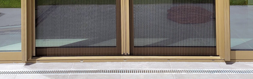 Installation de moustiquaire plissées double portes à Luxembourg. Les profilés, dans des coloris RAL soigneusement adaptés au très grands châssis du client, se fondent harmonieusement dans l’esthétique existante. Cette solution sur mesure offre une protection fiable contre les insectes tout en préservant la vue panoramique et la circulation d’air.